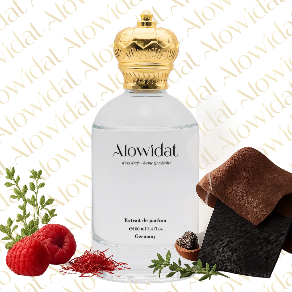 Ein intensiver und luxuriöser Duft, der mit der warmen Würze von Safran und der süßen Note reifer Himbeeren eröffnet. Weihrauch und Jasmin verleihen dem Herzen eine sinnliche Tiefe, während die Basis aus Leder, schwarzem Wildleder und Amber eine verführerisch rauchige Eleganz entfaltet. Ein kraftvoller Duft voller Charakter und Raffinesse – sinnlich, edel und unvergesslich.